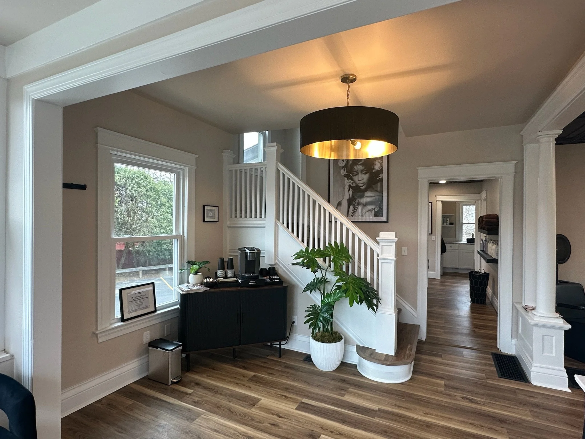 Run your own beauty business in our fully-equipped, newly renovated space featuring an open-salon concept downstairs with private suites upstairs. You and your clients will benefit from two bathrooms, a huge parking lot, washer & dryer, and all utilities included.
